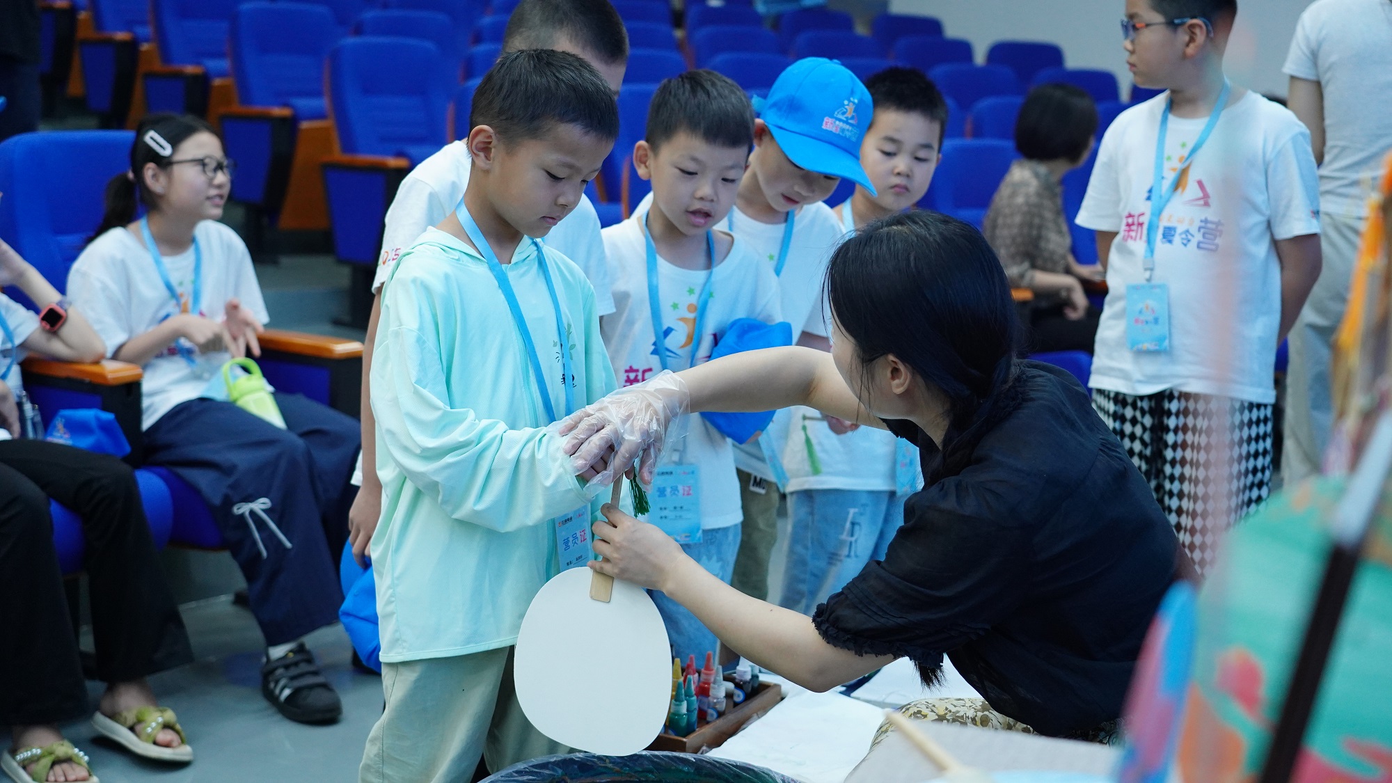 在老師的指導下,孩子們認真學習漆扇制作技巧,從顏色選擇到滴入漆料再到素扇入水附著花紋,一把把絢麗、雅致的漆扇躍然而出。大家在實踐中感受非遺技藝的精妙,更在潛移默化中培養(yǎng)了對傳統(tǒng)文化的熱愛。